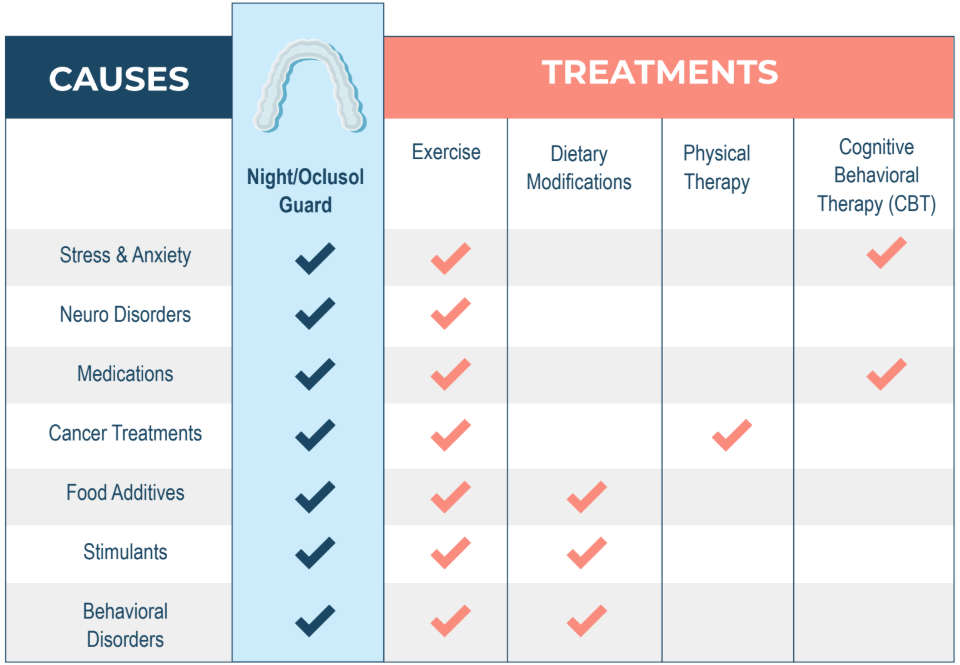 Treatment protocol varies based on what is believed to be the underlying cause(s) of the individual's bruxism.